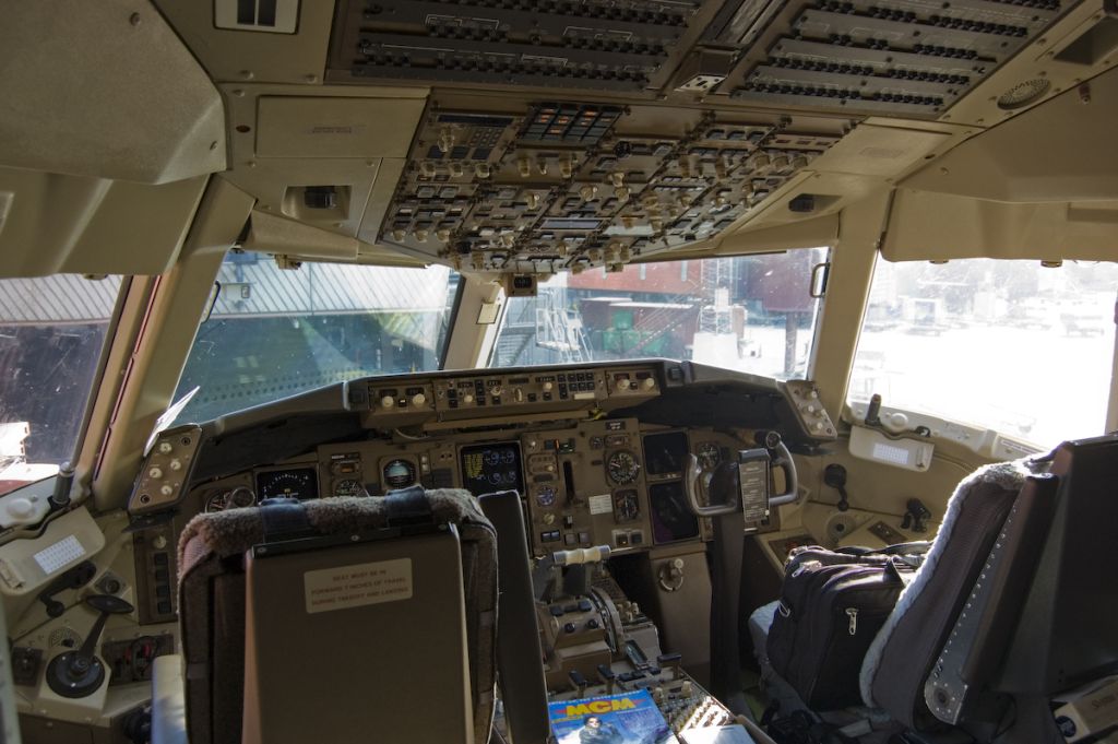 Příď s pilotní kabinou vyrábí Boeing Wichita, s jedinou výjimkou, kterou je čelní prosklení. Čelní skla větrného štítku jsou plochá, boční jsou lehce zakřivená. Pilotní sedadla jsou plně polohovatelná, potažena ovčí kůží. Kabině dominuje šest CRT obrazovek od Rockwell Collins, které jsou využívány systémy EFIS (konkrétně Honeywell EFIS-7000) a EICAS, bližší popis výše. Pilotní kabina B767-400ER je mírně odlišná od předchozích verzí a více podobá B777 a B737NG, namísto klasických CRT obrazovek má v pilotní kabině šest LCD o rozměrech 203 x 203 mm od firmy Rockwell Collins.