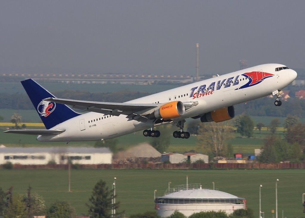 Delší dobu létal B767 v České republice u Travel Service, pronajatý od Icelandairu. Letoun B767-383ER výrobního čísla 25365/395 z roku 1991 a s poznávací značkou TF-FIB poprvé přistál v Ostravě 3. prosince 2008 krátce po 21. hodině při letu z Tel Avivu, o den později se poprvé ukázal v Praze na Ruzyni. Letoun byl vyroben v září 1991 (v.č. 25365) a o měsíc později dodán SAS Scandinavian Airlines. Po vyřazení od SAS jej v listopadu 2003 získala irská leasingová společnost Sunrock Aircraft Corporation, která jej o měsíc později pronajala Icelandairu. Islandský dopravce ještě v témže roce letoun i s posádkou pronajal krátce britské charterové společnosti AV8Air a v roce 2006 na dva roky venezuelské společnosti Santa Barbara Airlines. Uspořádání kabiny pro cestující je dvoutřídní s 28 sedadly v obchodní třídě a 225 v ekonomické.